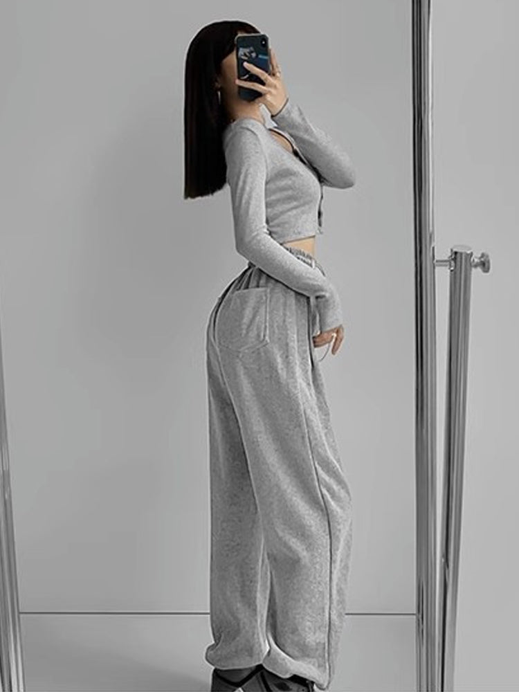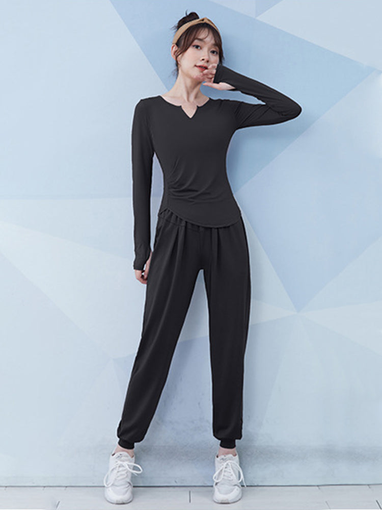 通気速乾 長袖トップスとジョガーパンツの二点セット