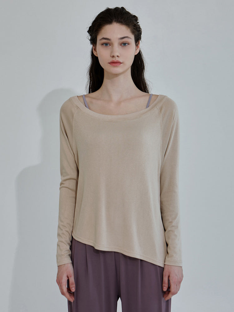 ゆったり ビッグネックデザイン 長袖シャツ