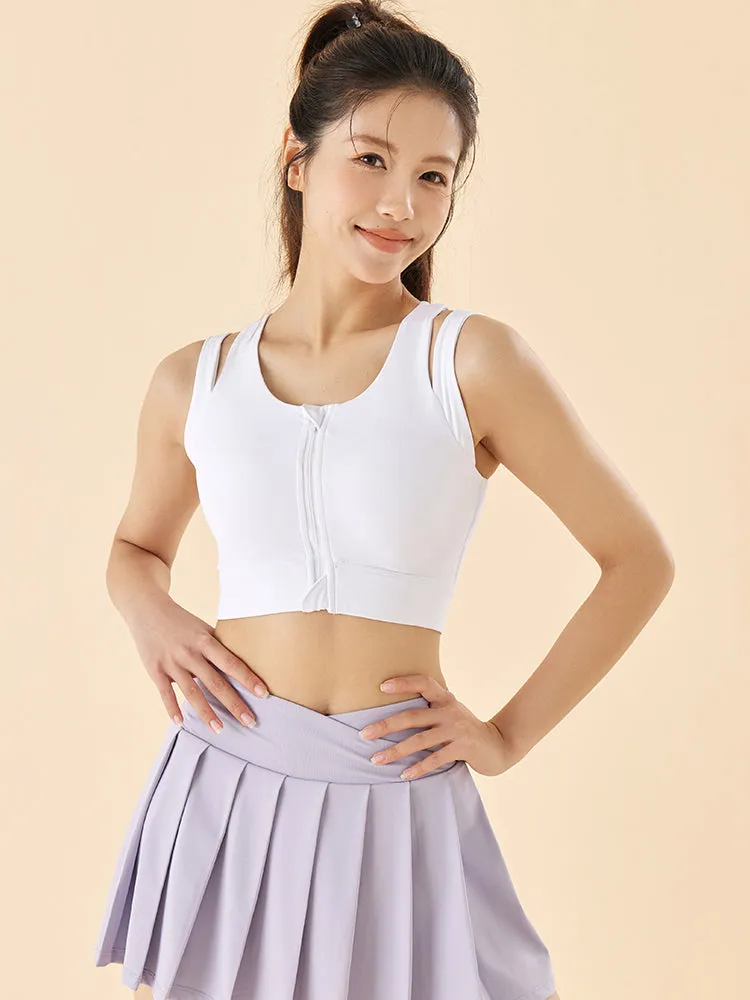 フロントチャック付き フェイクダブルストラップ ヨガブラ