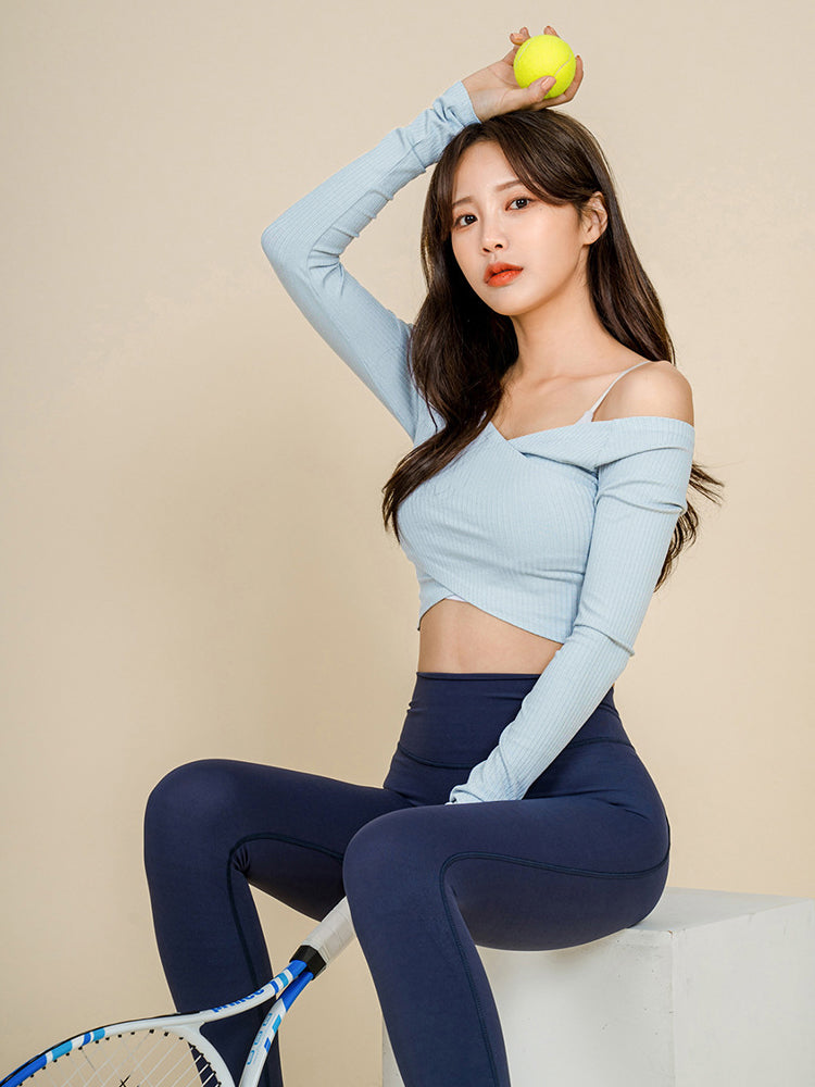 オフショルダー 交差 長袖シャツ
