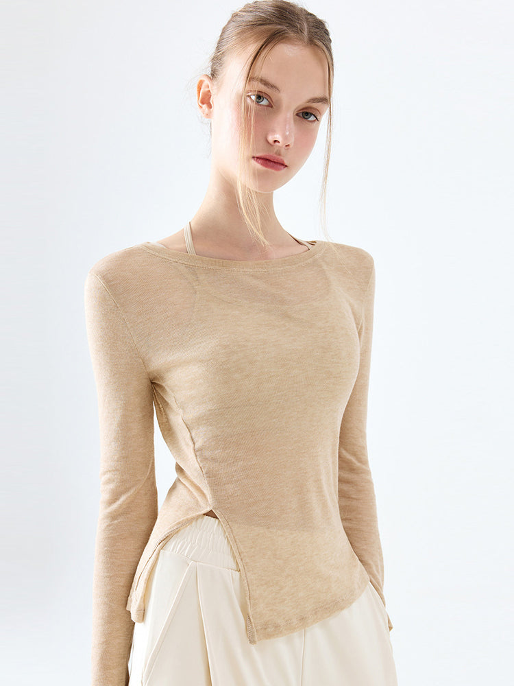 サイドスリット 長袖シャツ