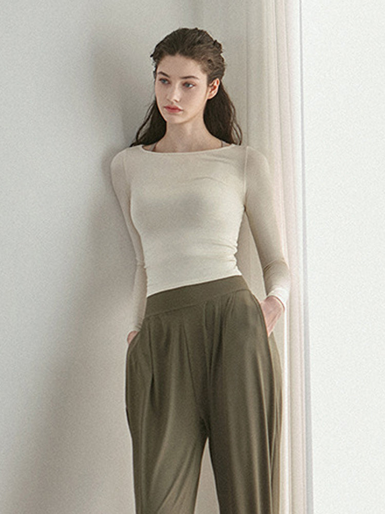 バックオープン 細身 長袖シャツ