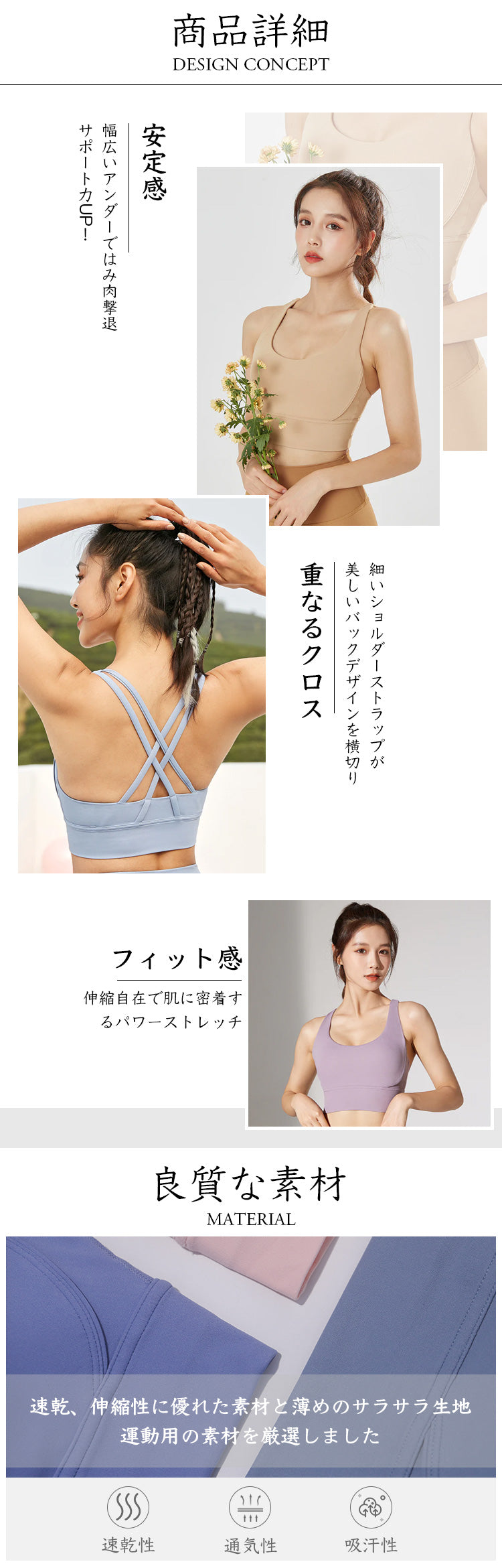 揺れないクロスバック 裸感スポーツブラ