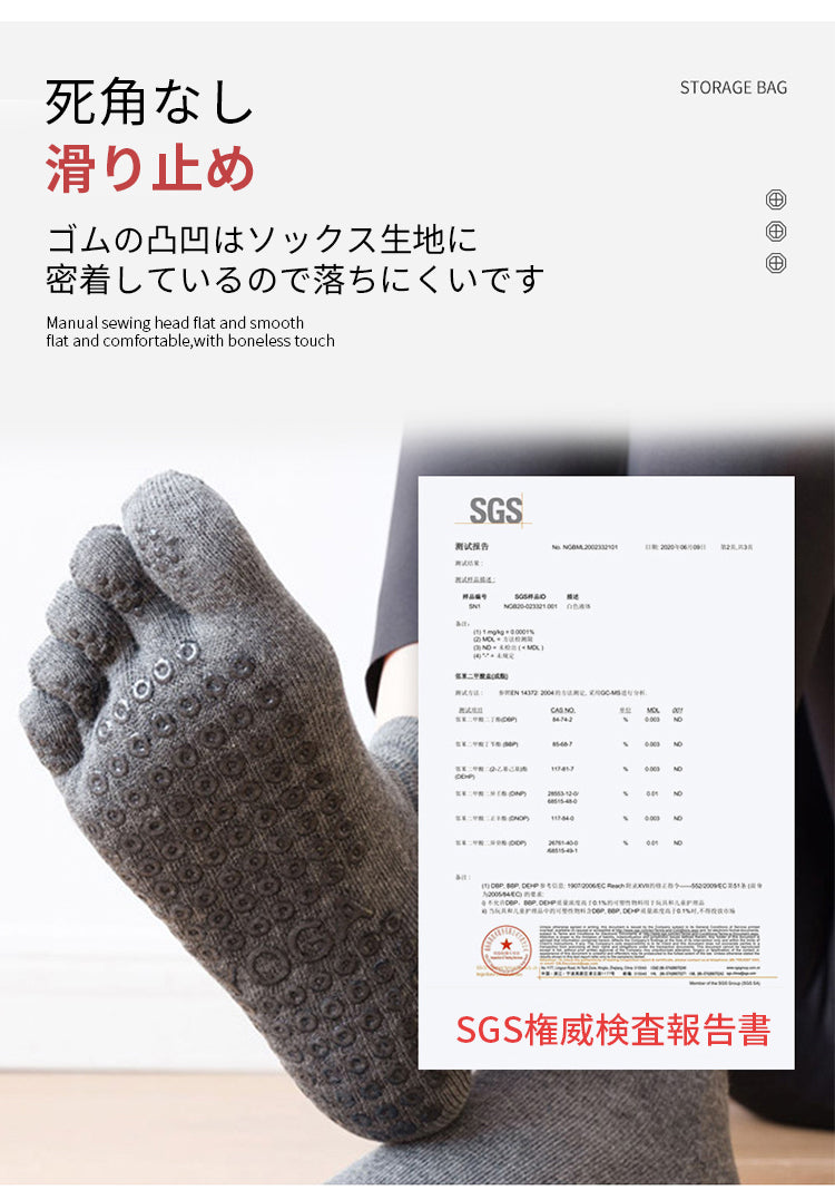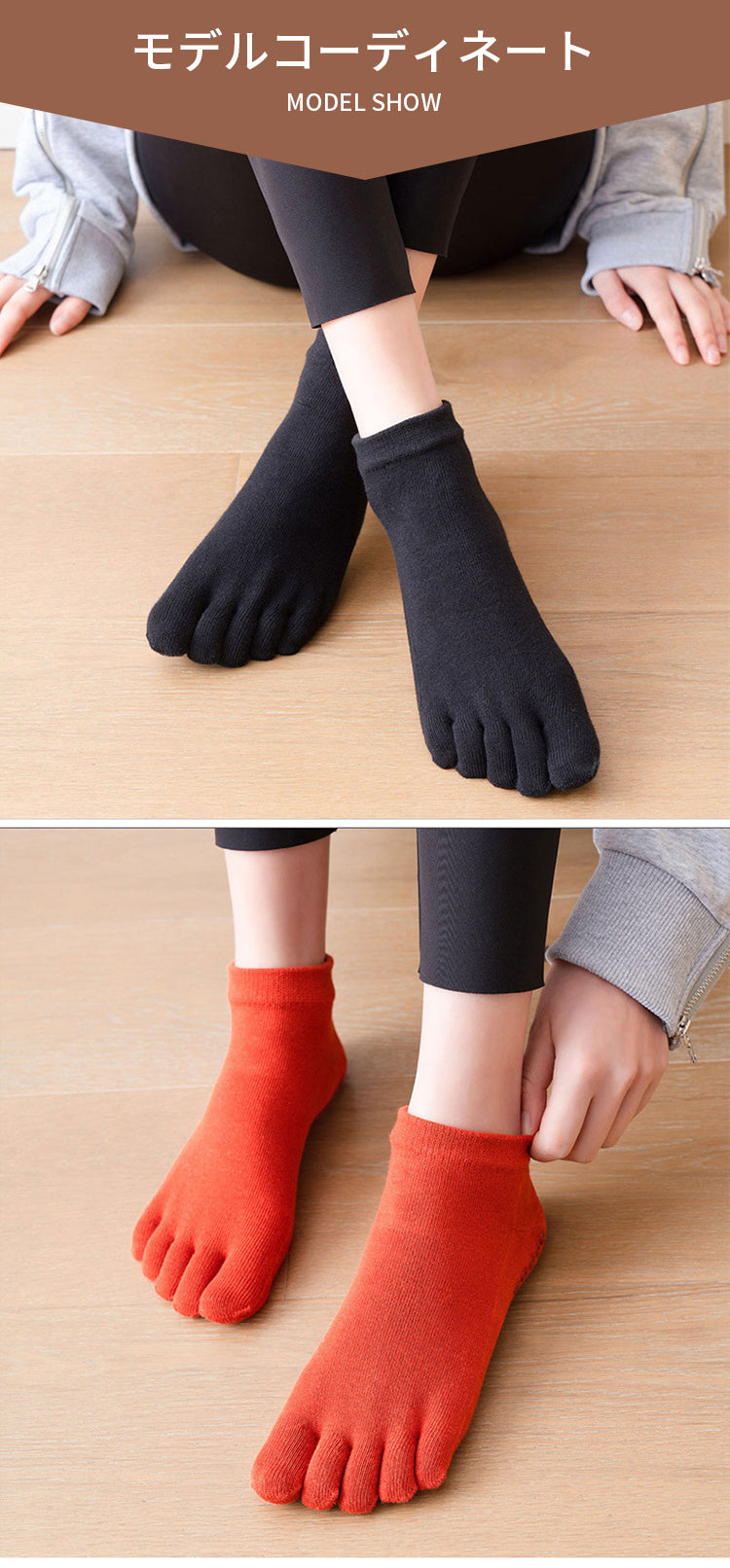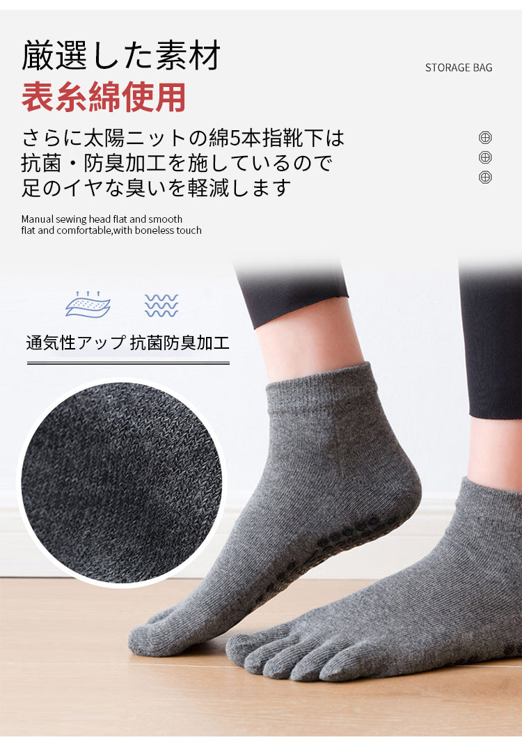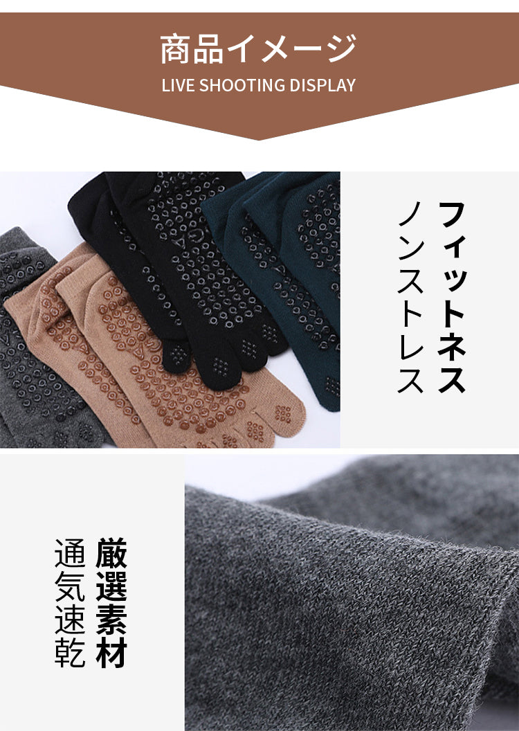 • 足裏に滑り止め素材使用の5本指ソックス。特に寒い季節のヨガに便利です。