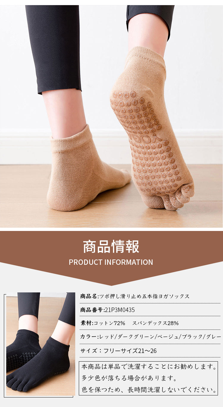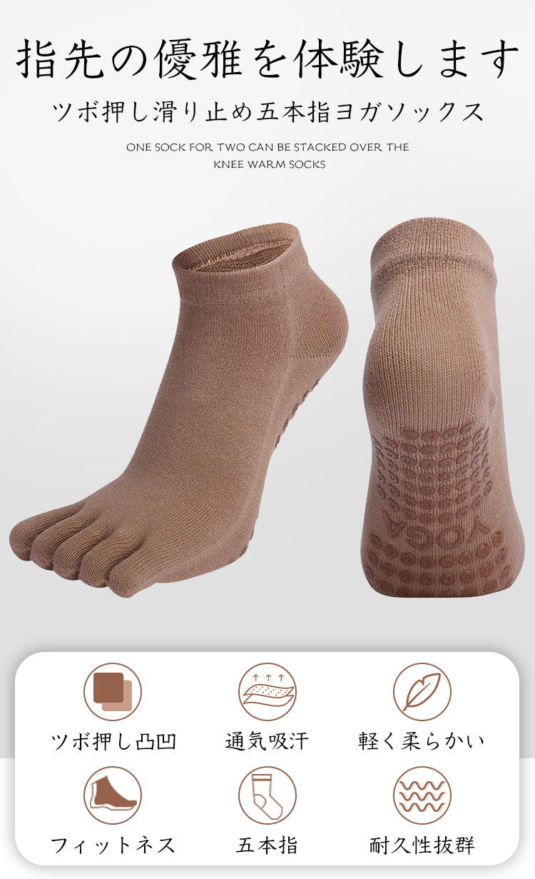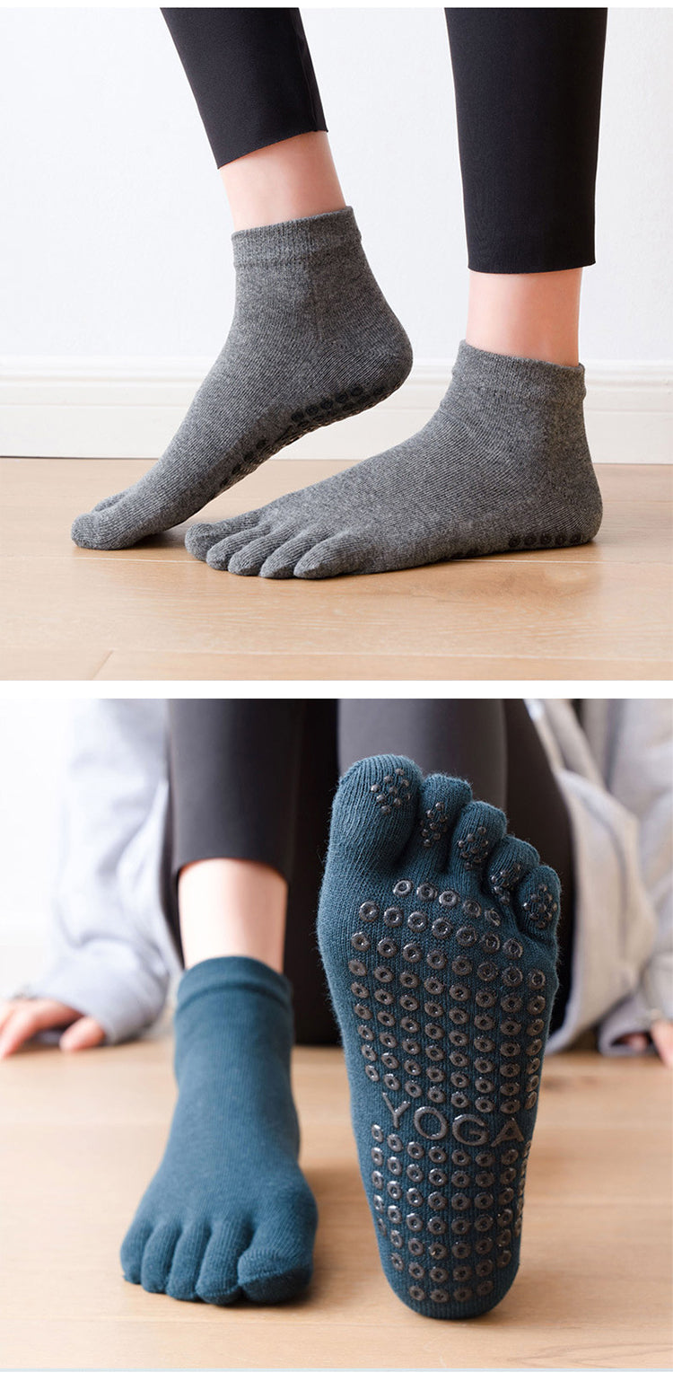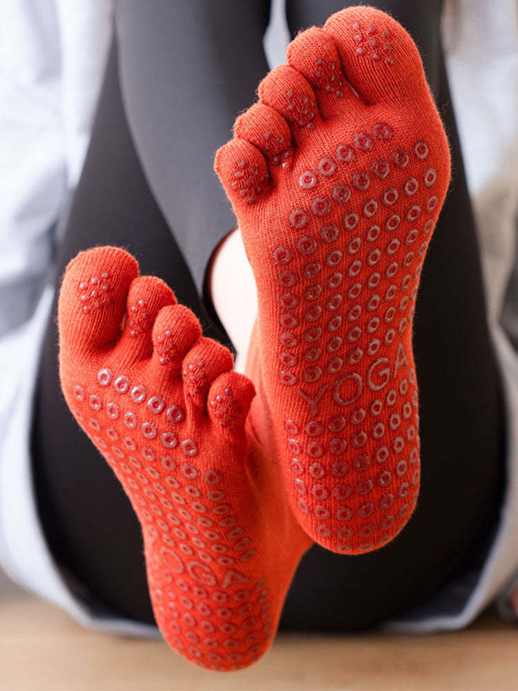 • 足裏に滑り止め素材使用の5本指ソックス。特に寒い季節のヨガに便利です。