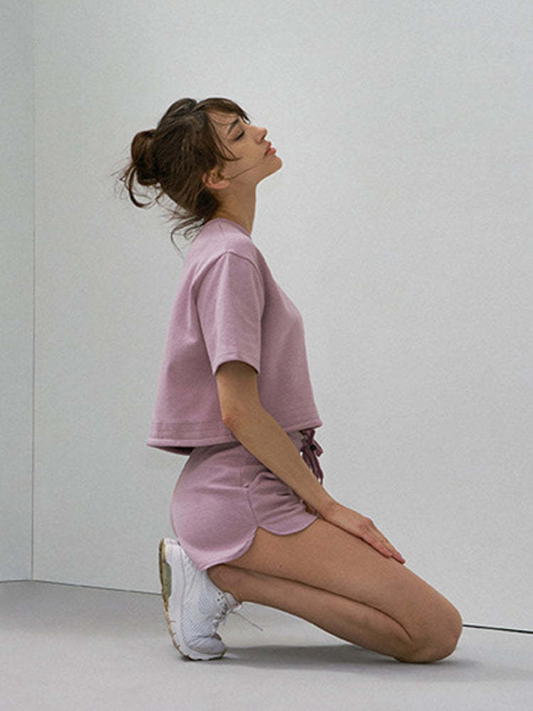 裾ドローストリング ショート丈 半袖シャツ