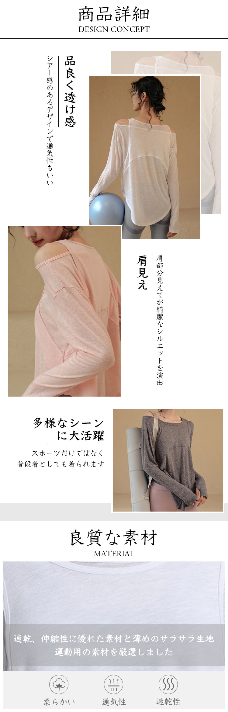 シアー素材オフショルダー ヨガTシャツ