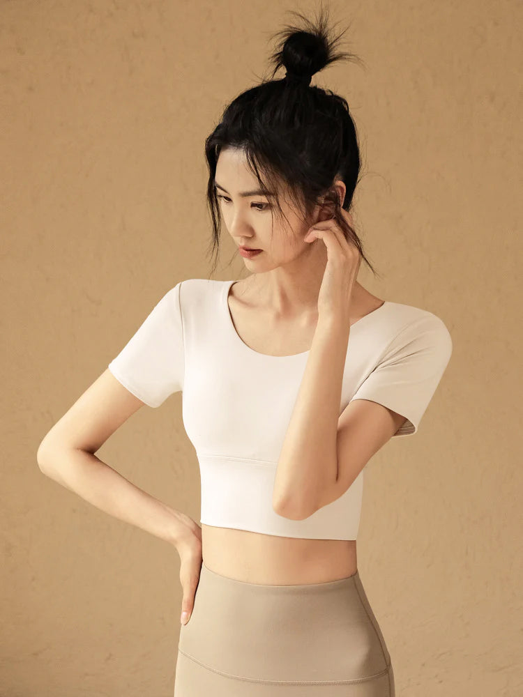 取り外し可能 パット付きXバック ヨガ半袖トップス